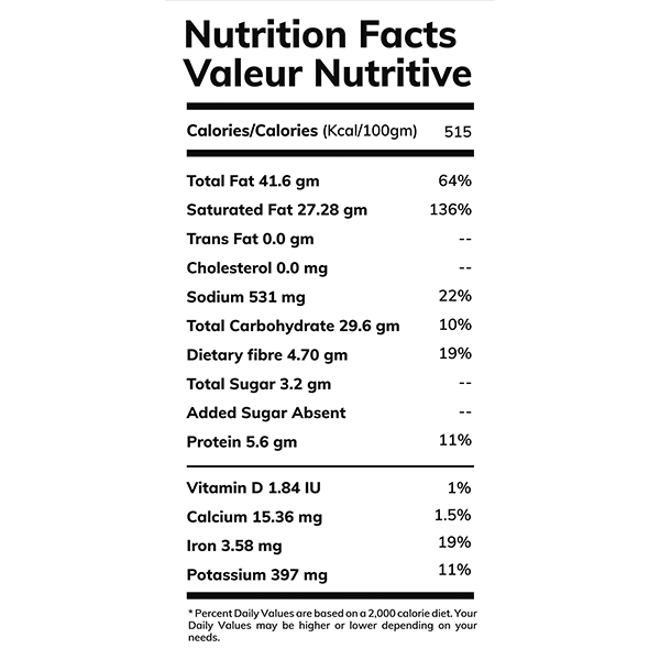 Black Gram (75.37), Tomato (12.03), Butter, Kidney beans, Hydrogenated Vegetable Oil, White Butter, Clarified Butter, Garlic, Ginger, Red Chilli Powder, Salt, Cream, Fenugreek seeds, Garam Masala, Green Chilli.