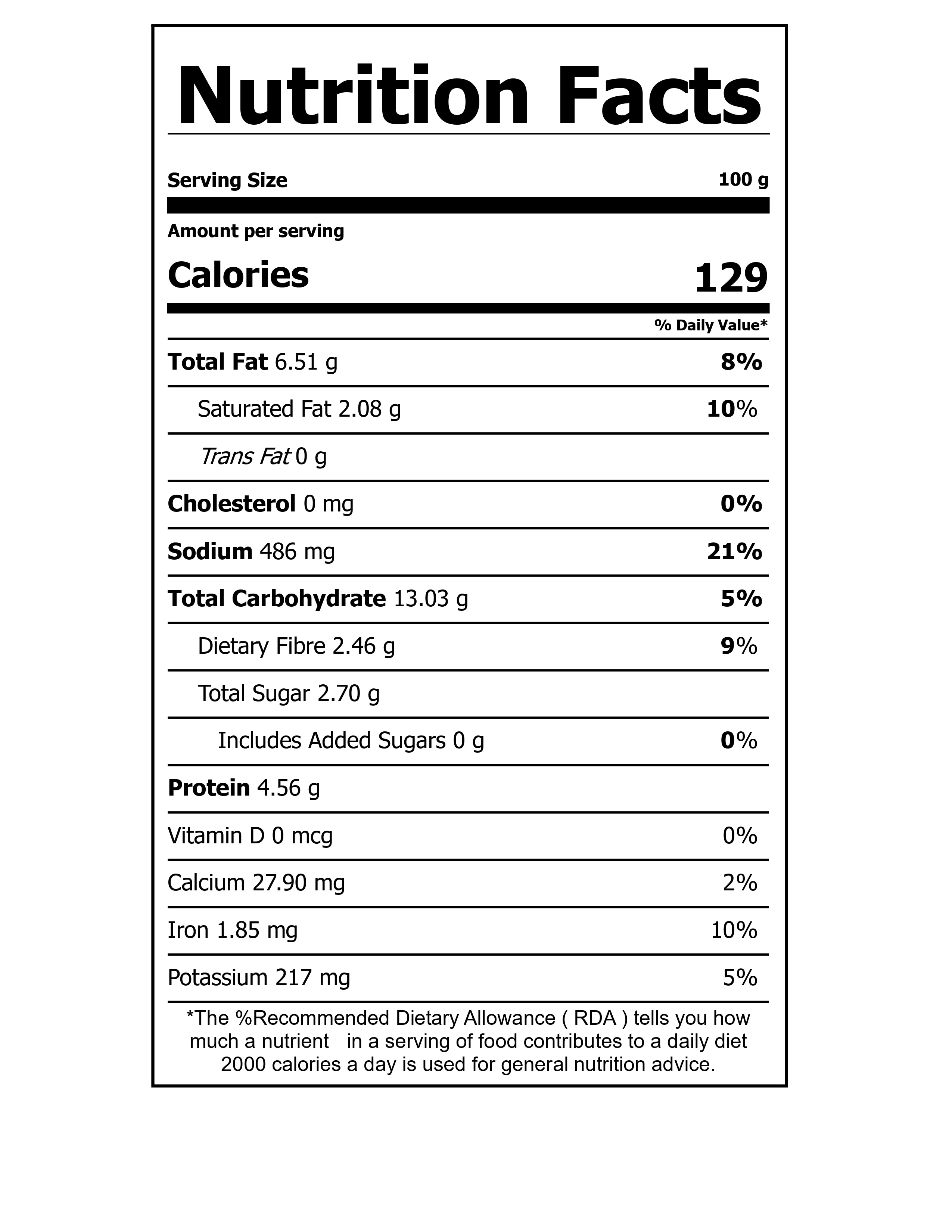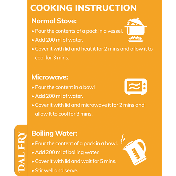 Ingredients: Split Pigeon peas (63.71), Tomato (12.36), Onion (11.25), Garlic, Pastureized Butter, Clarifed Butter (Ghee), Ginger, Iodized Salt, Coriander Leaves, Cumin, Green Chilli, Turmeric, Red Chilli, Asafoetida.
