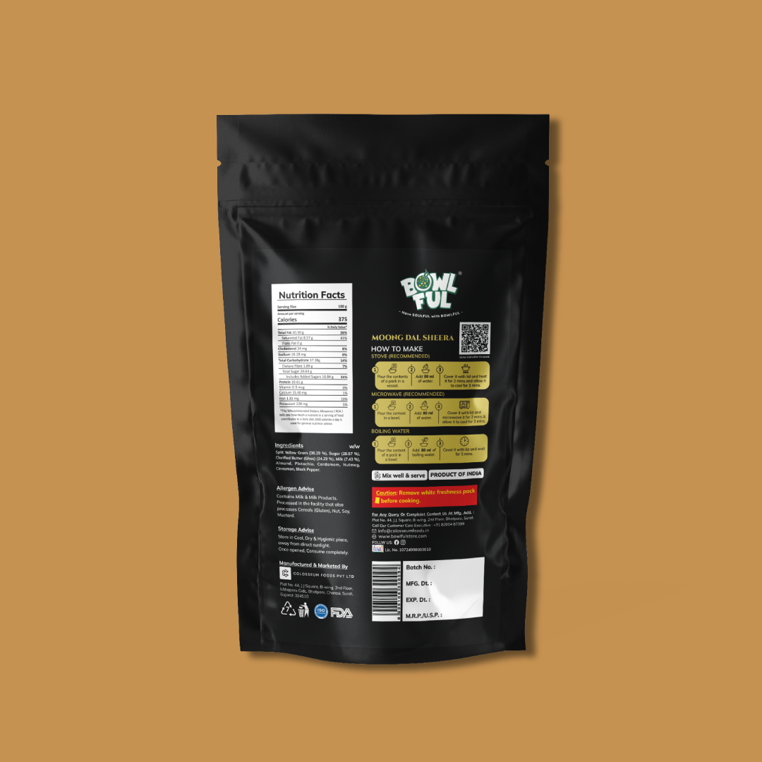 Ingredients: Split Yellow Gram (36.29), Sugar (28.57), Clarified Butter (Ghee) (24.29), Milk (7.43), Almond, Pistachio, Cardamom, Nutmeg, Cinnamon, Black Pepper.