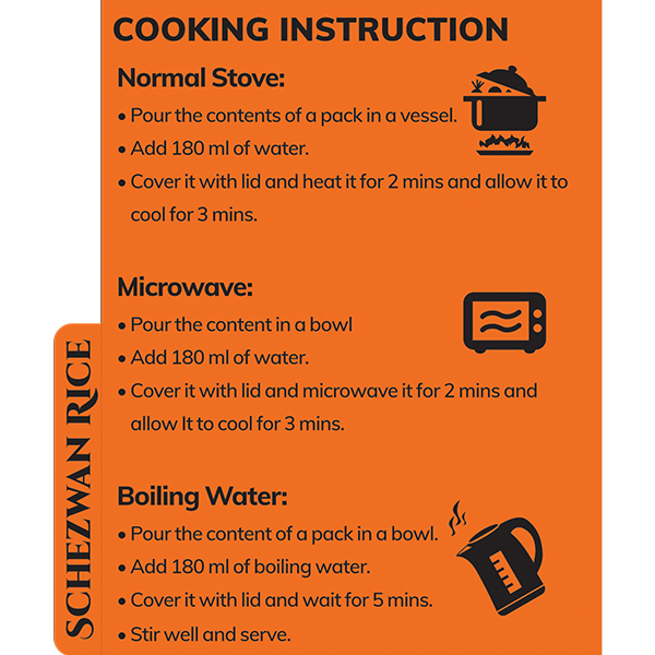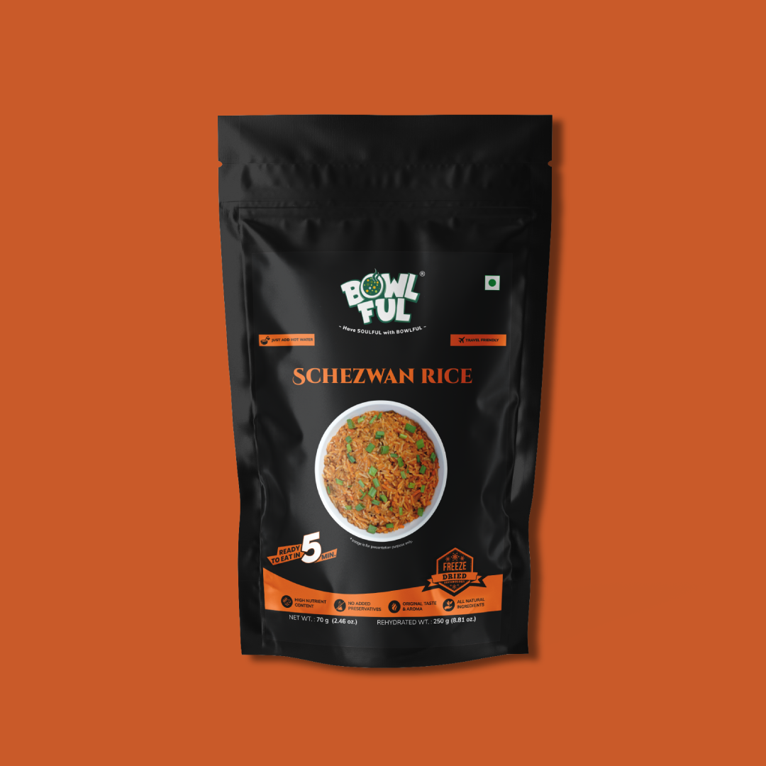 Product Description: Schezwan Rice is a Spicy and Tasty Indo-Chinese Recipe of Stir-Fried Vegetables and Rice in Schezwan Sauce. Freeze Dried Foods is the latest technology that gives the food life of 365 days with keeping the food’s taste, aroma, texture, and color as it was after cooking. Just adding the water as mentioned in the pack will make the food ready in just 5 minutes.